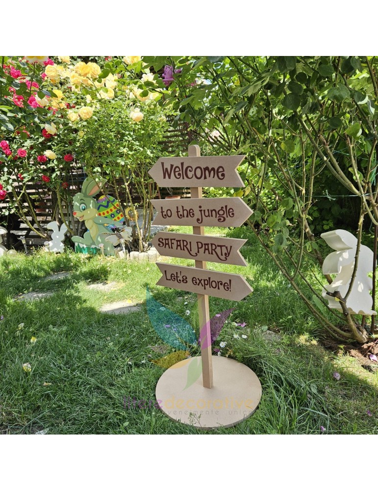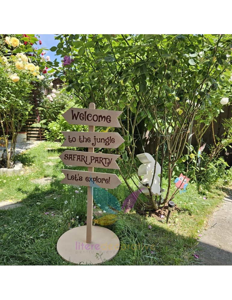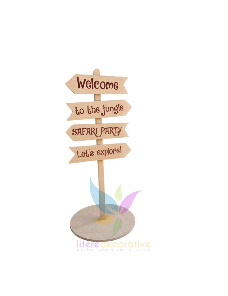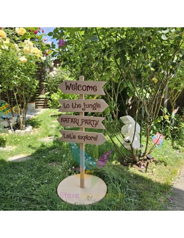 Indicator Safari Party, realizat din MDF.